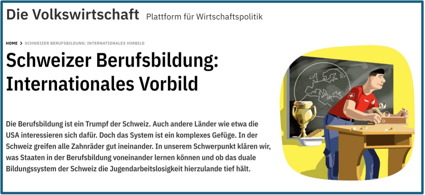 In der aktuellen Ausgabe von Die Volkswirtschaft / La Vie économique steht die Schweizer Berufsbildung als internationales Erfolgsmodell im Mittelpunkt:
